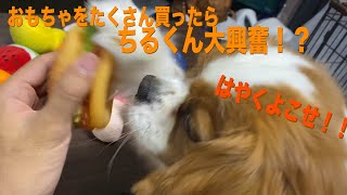 こんにちは、キャバリアのちるくん・るーくくんです。 今回は登録者300人企画の続きでちるくん、るーくんにおもちゃをたくさん買ってみた動画...